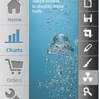 ToolBar is the perfect component to create a pane of tools in either a horizontal or vertical layout. Each tool can contain a transparent png icon along with a text label. You can seamlessly finger-scroll through sets of tools displayed across a semi-transparent, gradient-filled background. Save precious space on your display and give your users a finger-friendly experience with ToolBar.