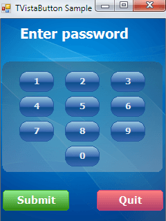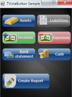 TVistaButton in an attractive, semi-transparent, gradient-filled button that replaces the standard button control. More than an ordinary button, anywhere within the rounded frame you can semi-transparently display an icon and position a label, or combine the two to make an appealing and professional graphic.